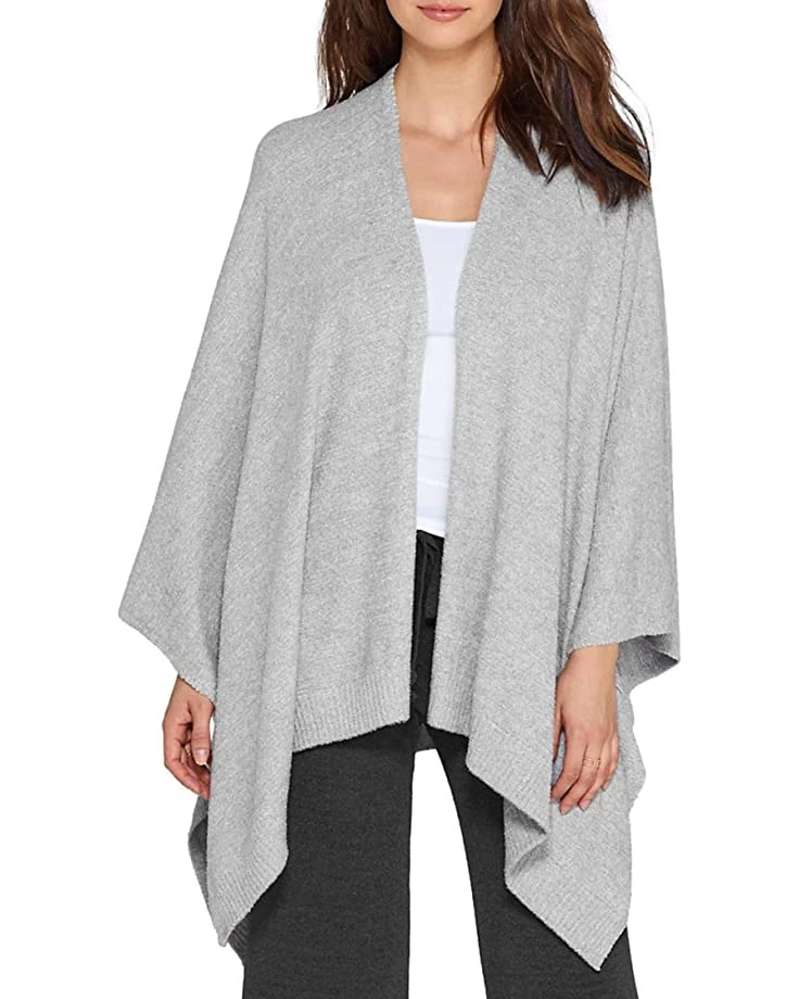 - Bundle up in the cozy Barefoot Dreams® Weekend Wrap that features a draped silhouette and a soft nylon-blend fabric.