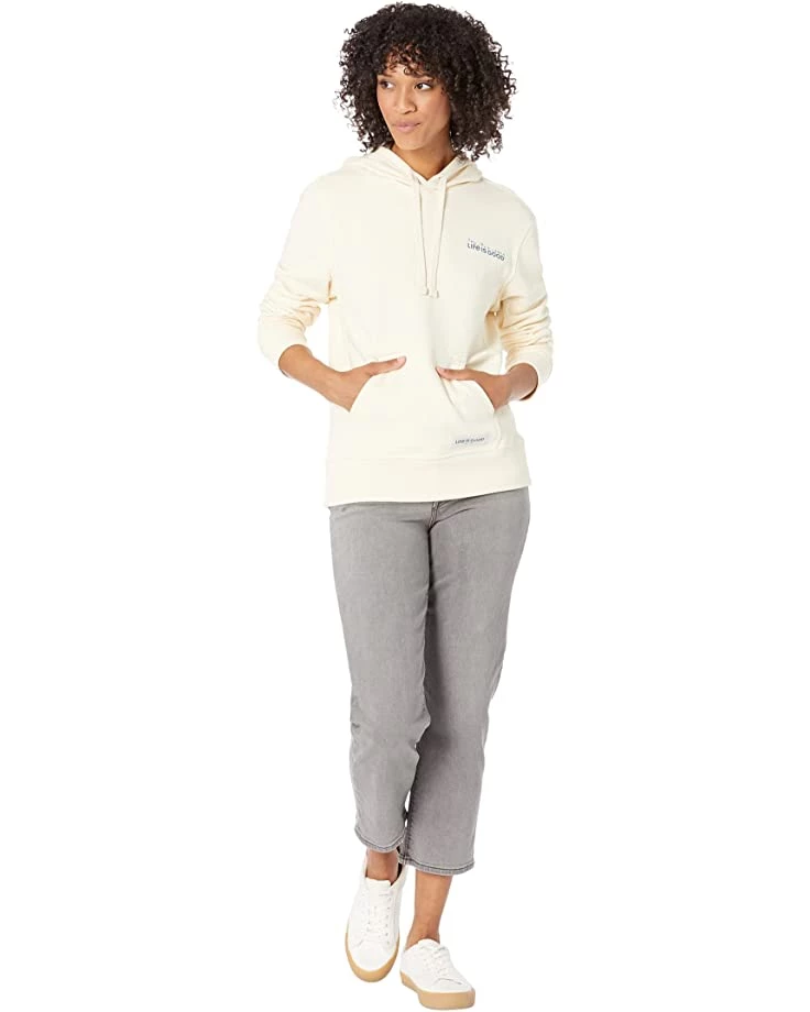 - When the temperature drops, put on the absurdly soft and cozy Life is Good® Fine Daisy Coin Simply True Fleece Hoodie and enjoy the weather without any worries.