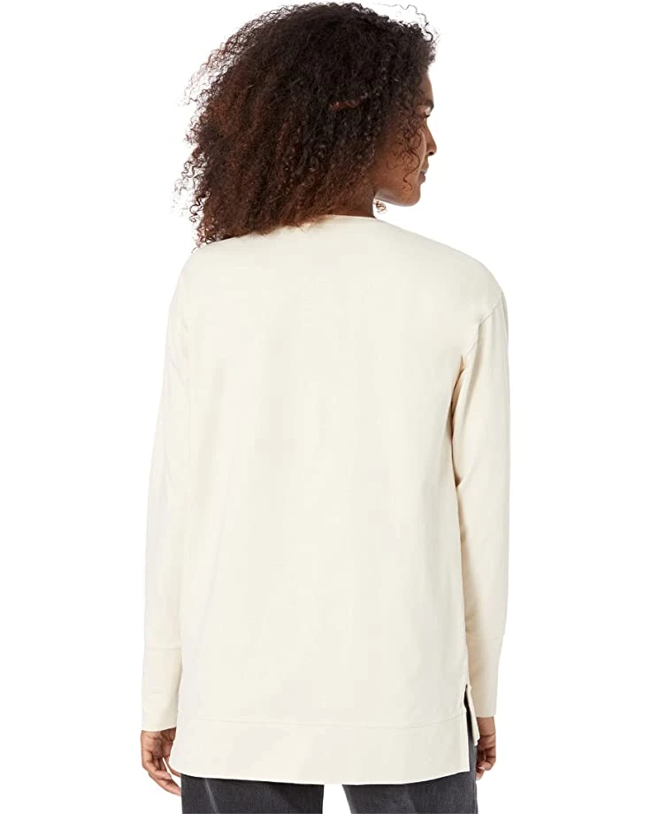 - Self-fabric band at neck, hem, and sleeve cuffs.