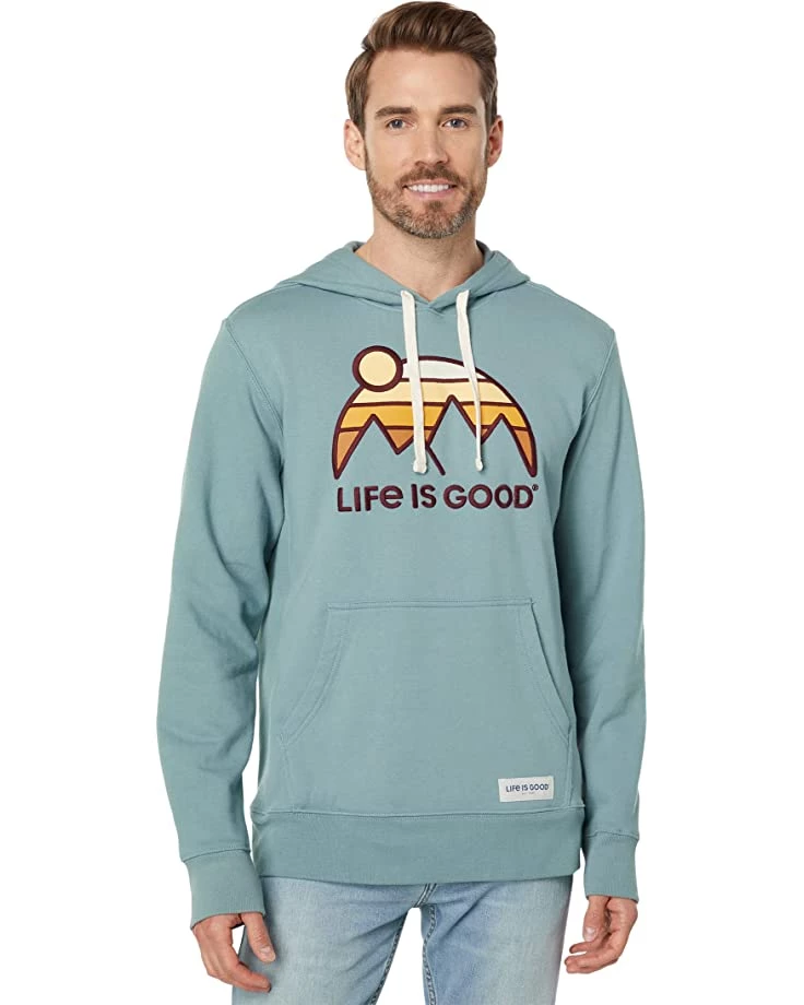- Stay warm and comfy wearing the Life is Good® Retro Mountains Simply True Fleece Hoodie.