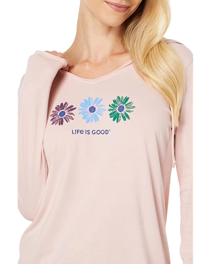 - Shine like the flower you are, wearing the Life is Good® Three Daisies Long Sleeve Crusher-Lite™ Hooded Tee.