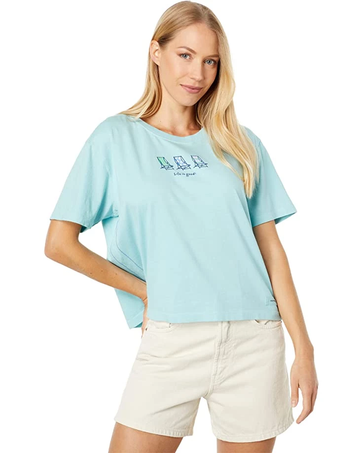 - Keep it fashionable and stylish wearing the Life is Good® Beach Chairs Boxy Crusher™ Tee.