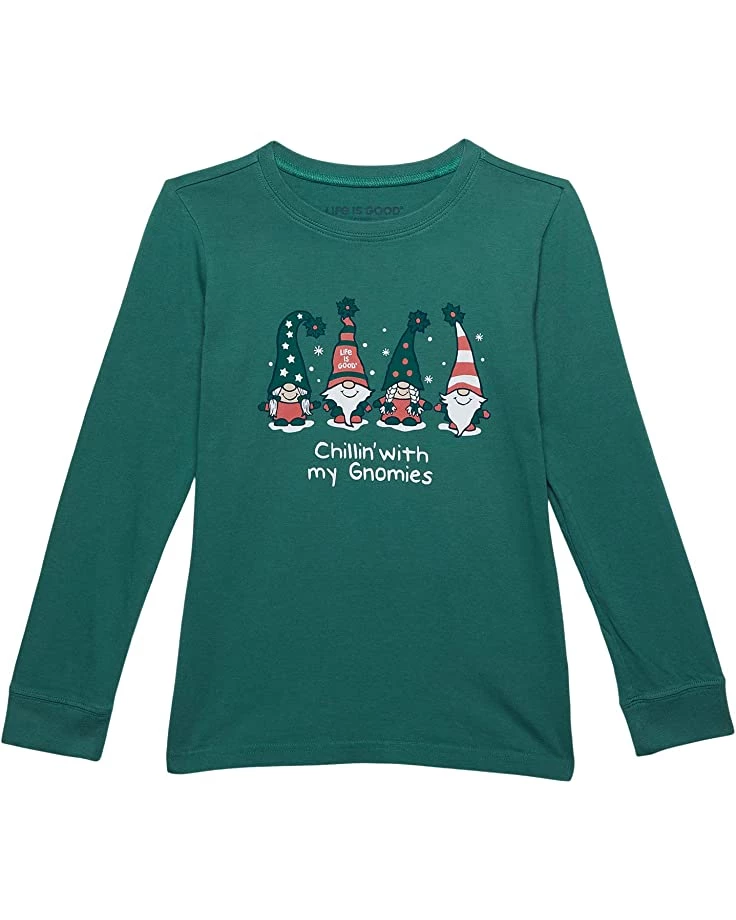 - Keep up with the festivities by giving your kiddo the Life is Good® Chillin’ with My Gnomes Long Sleeve Crusher™ Tee.
