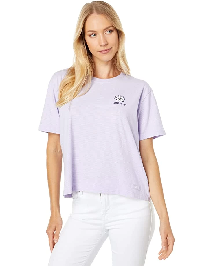 - Set your self carefree in the comfy feel of Life is Good® Crusher-Lite™ Striped Boxy Tee.