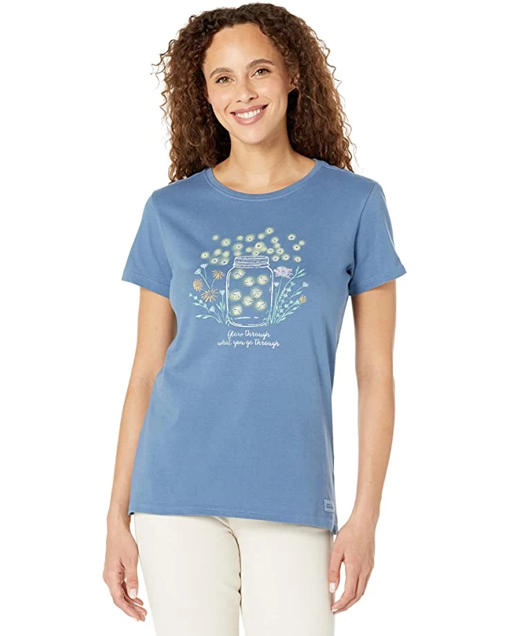 - Life is Good® while wearing the Fireflies Flowers Jar Crusher tee.