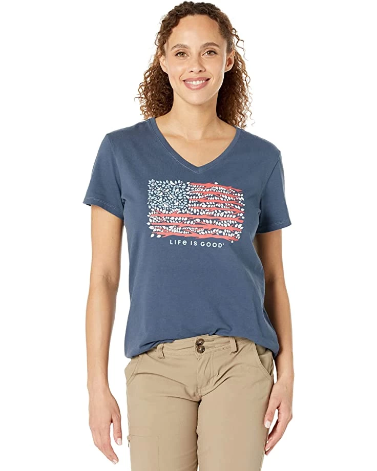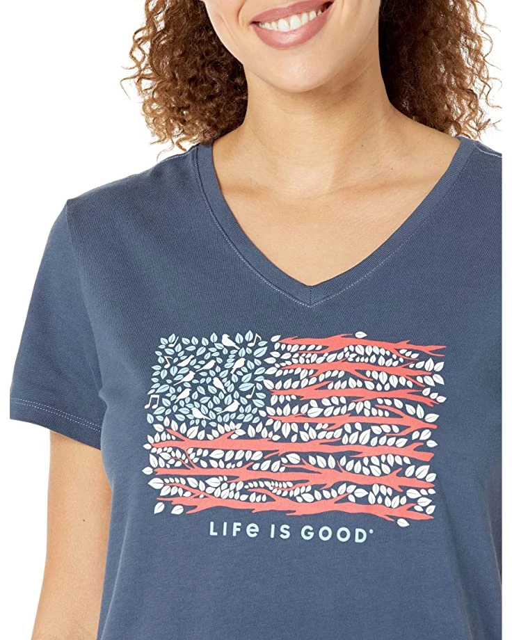 - Look and feel your best in the Life is Good® Flag Tree Crusher™ Vee.