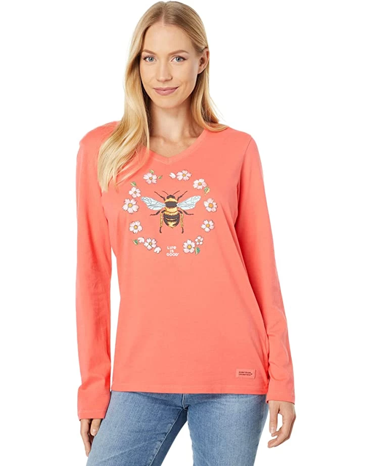 - Show your love for nature, wearing the Life is Good® Flowerbee Long Sleeve Crusher™ Vee.