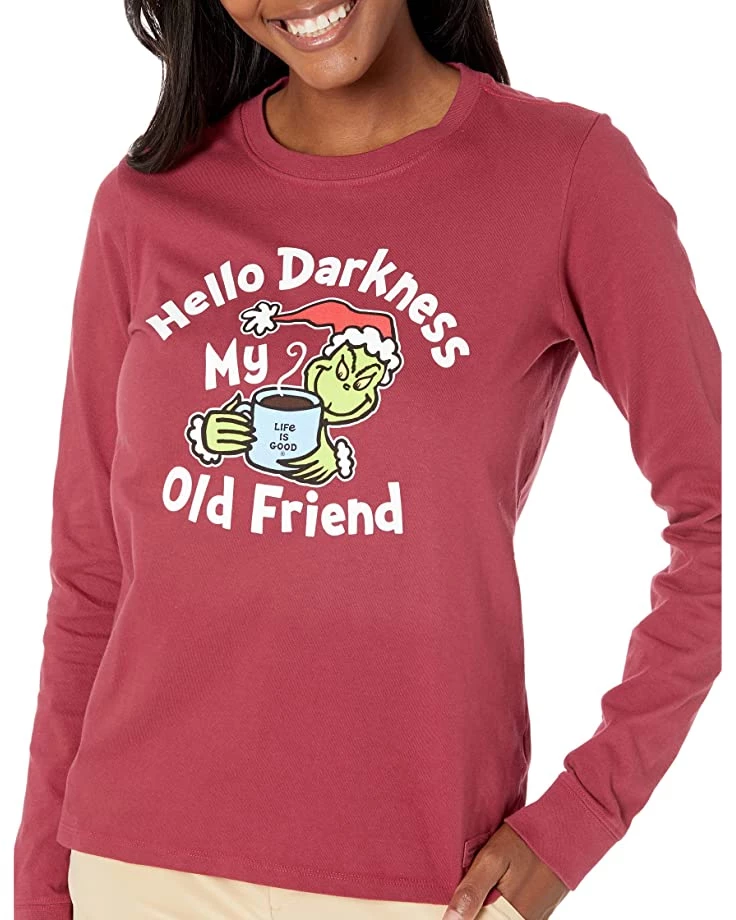- Keep up with your basic look wearing the Life is Good® Grinch Hello Darkness Long Sleeve Crusher™ Tee.