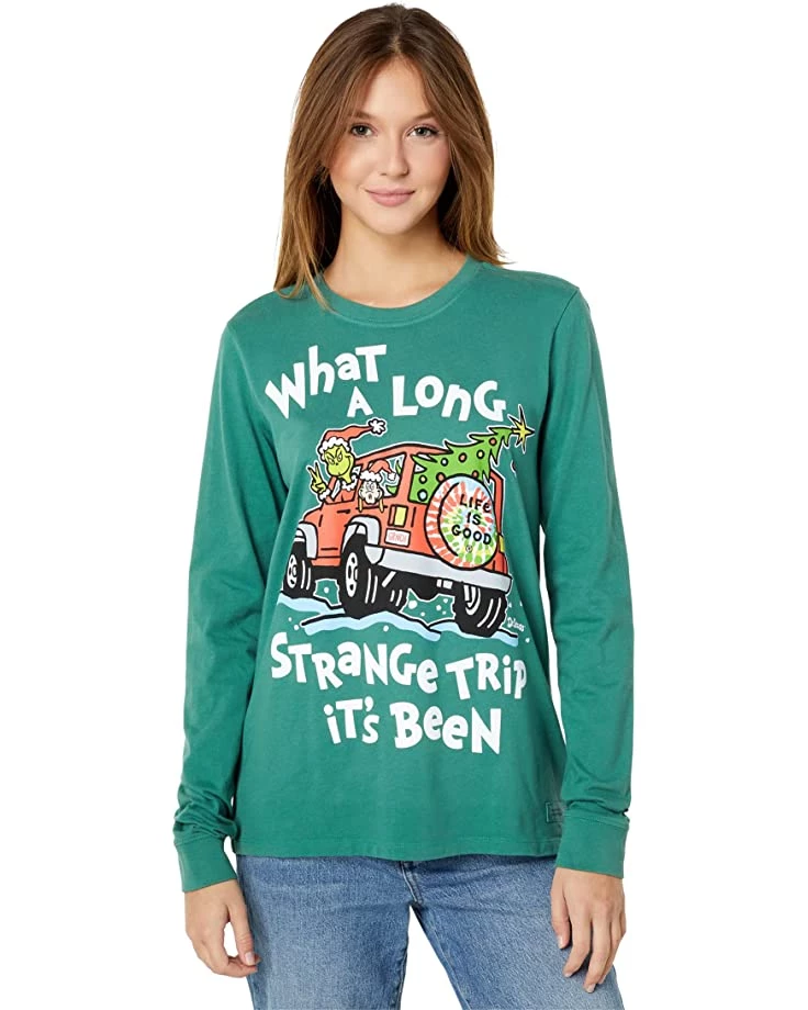 - The Life is Good® Grinch Long Strange Trip Long Sleeve Tee is incredibly adaptable and meticulously crafted.