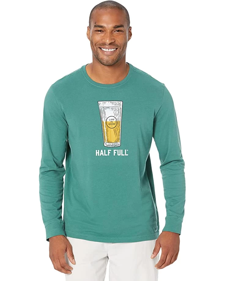 - Add some fun vibes to your casual style by wearing the Life is Good® Half Full Beer Long Sleeve Crusher-Lite™ Tee.