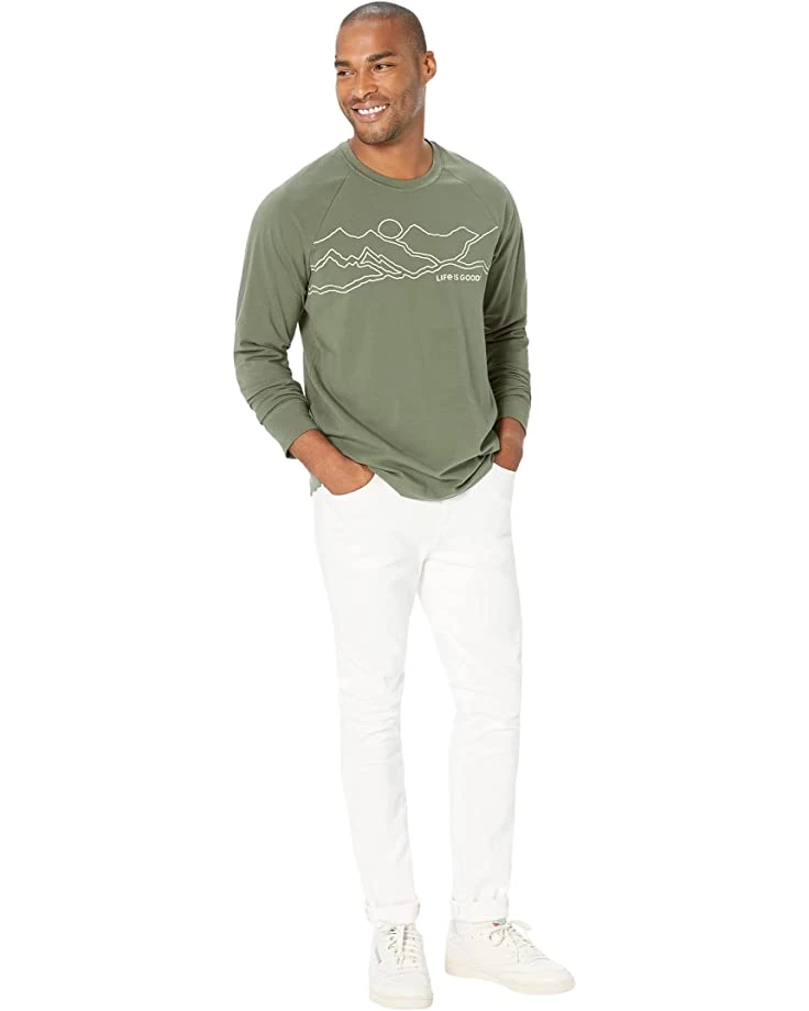 - Give your styling game some new heights to achieve with the super comfy and stylish Life is Good® Linear Mountains Crusher-Flex™ Crew tee.