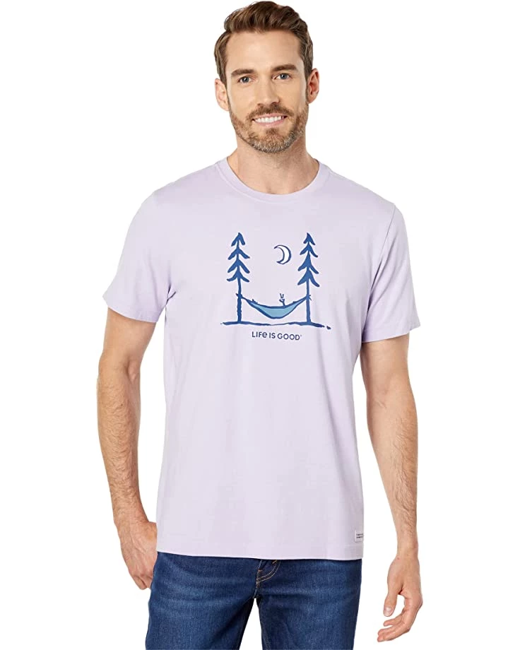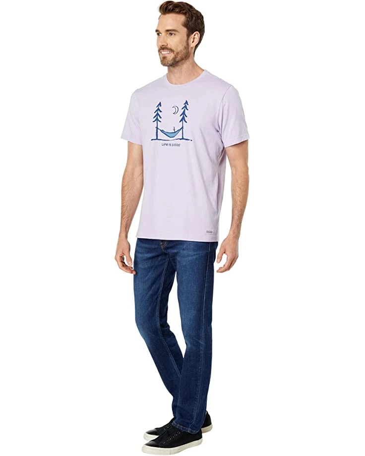 - It’s important to schedule time for nothing, so relax in the Life is Good® Peace Out Crusher™ Tee for just that. Short sleeve, regular fit pullover tee offers a ribbed crew neck with a straight hemline.