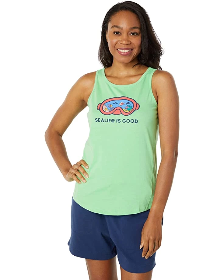 - Sit back and relax in a cool and comfy style wearing the Life is Good® Sealife Scuba Mask High-Low Crusher-Lite™ Tank.
