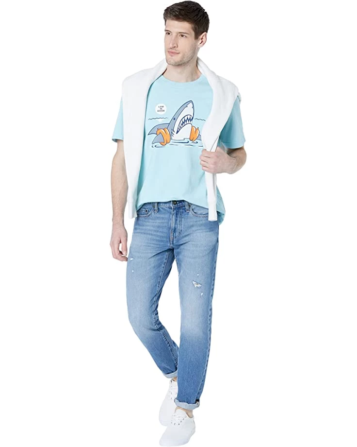 - The Life is Good® Shark Floaty Swim Crusher™ Tee feels comfy and is perfect for a casual look.