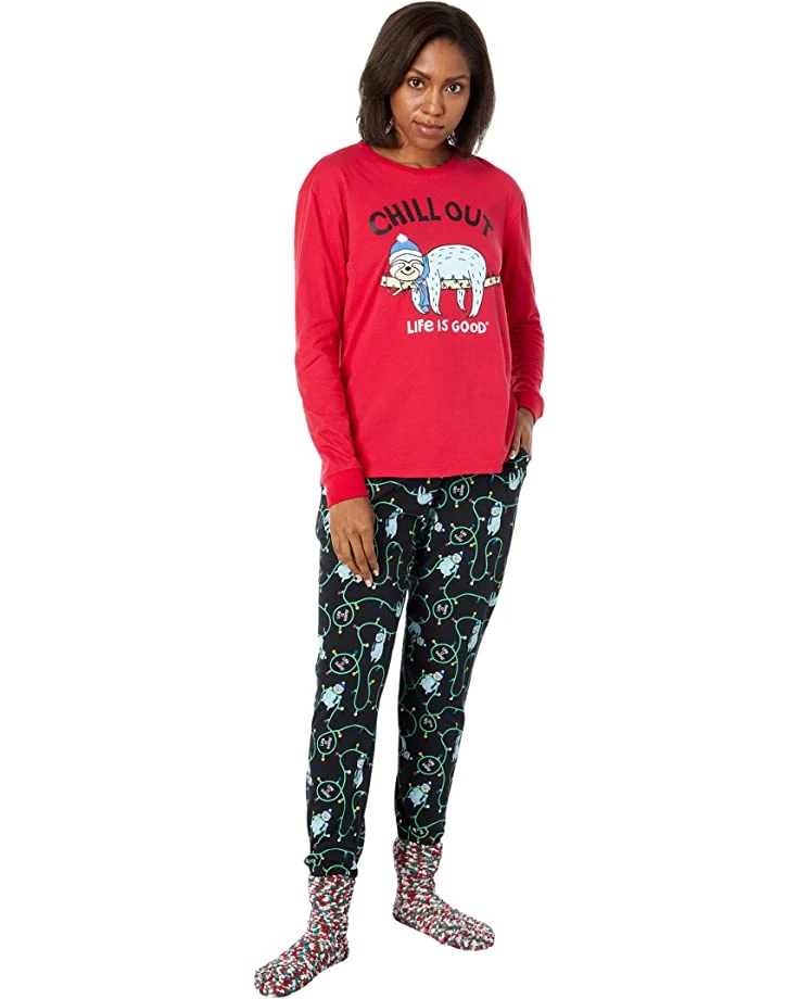 - Sleep comfortably wearing the Life is Good® Chillin Sloth Snuggle Up Joggers Pajama Set.