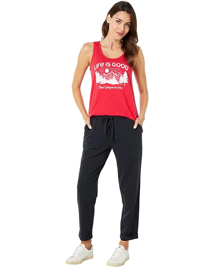 - Whether your plans include the couch or the gym, the cropped Life is Good® Solid Crusher Flex™ Pants are comfortable enough for either!